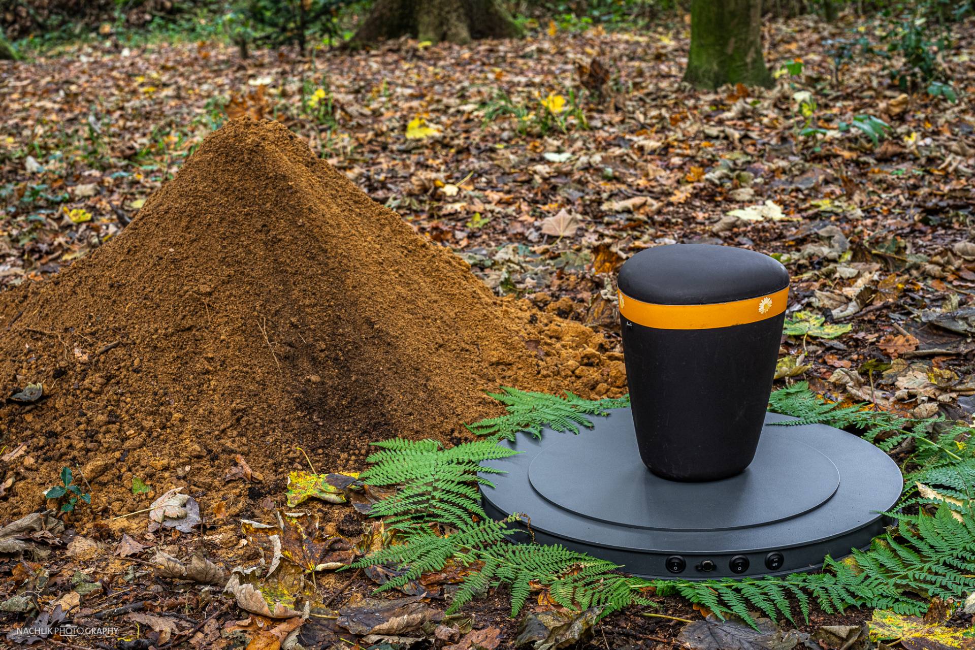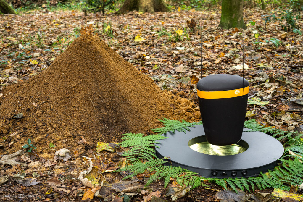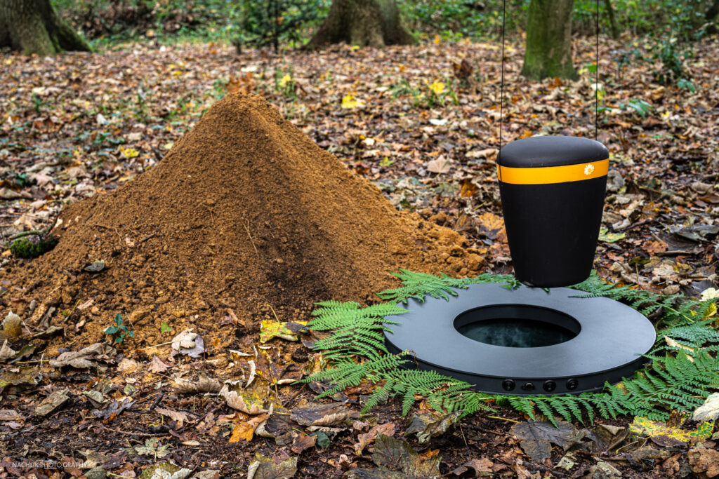 Im Inneren des Rings befindet sich eine warme LED-Beleuchtung, die ein sanftes, beruhigendes Licht abstrahlt. Diese ist so positioniert, das sie das Urnengrab von allen Seiten ausleuchtet und eine angenehme Atmosphäre schafft. Das warme Licht vermittelt ein Gefühl von Geborgenheit und erzeugt eine behagliche Stimmung.